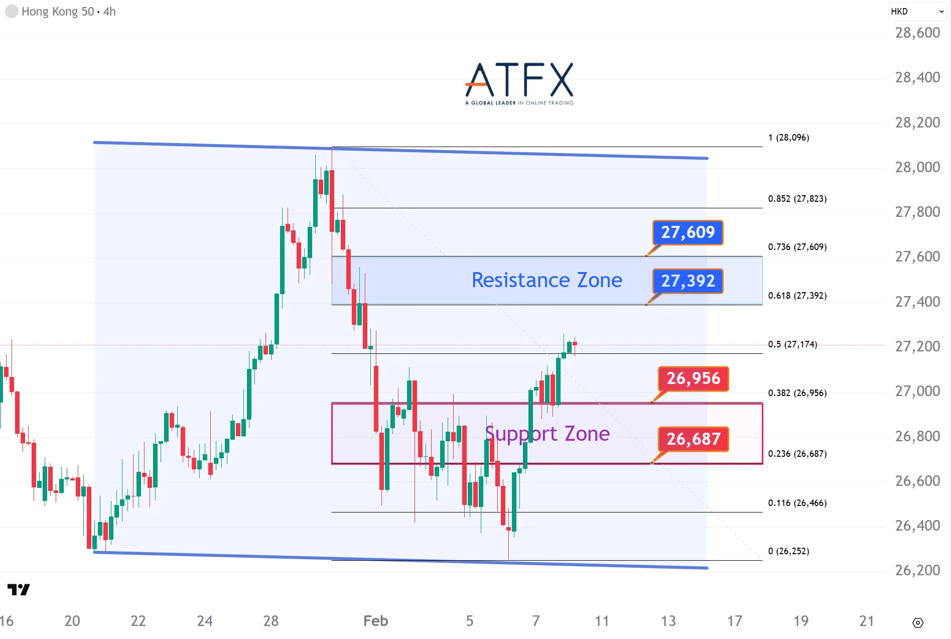 The NAS100 extended its rebound, led by software and mega-cap tech stocks, though heavy AI capex and stretched valuations continue to cap risk appetite. The index bounced from the 24,867–25,044 support zone, with upside now testing the 25,584–25,807 resistance area. Failure to clear this zone may keep the price range-bound.