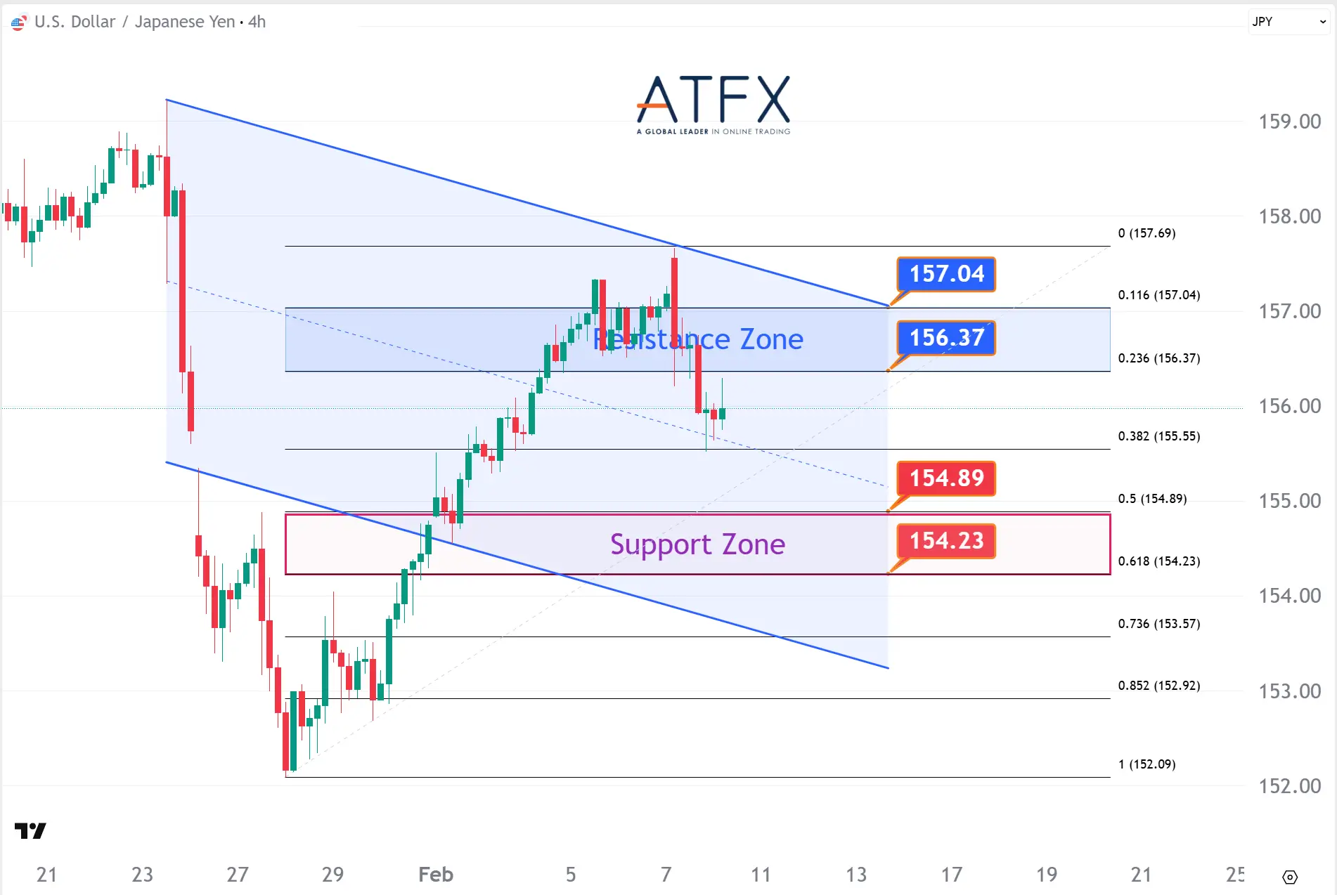 USDJPY pulled back amid broad dollar weakness, with price action driven more by shifting Fed expectations than by Japan’s domestic outlook. The pair struggled to sustain gains above the 156.37–157.04 area, while dip-buying emerged around 154.23–154.89. Near-term direction remains range-bound and USD-sensitive.
