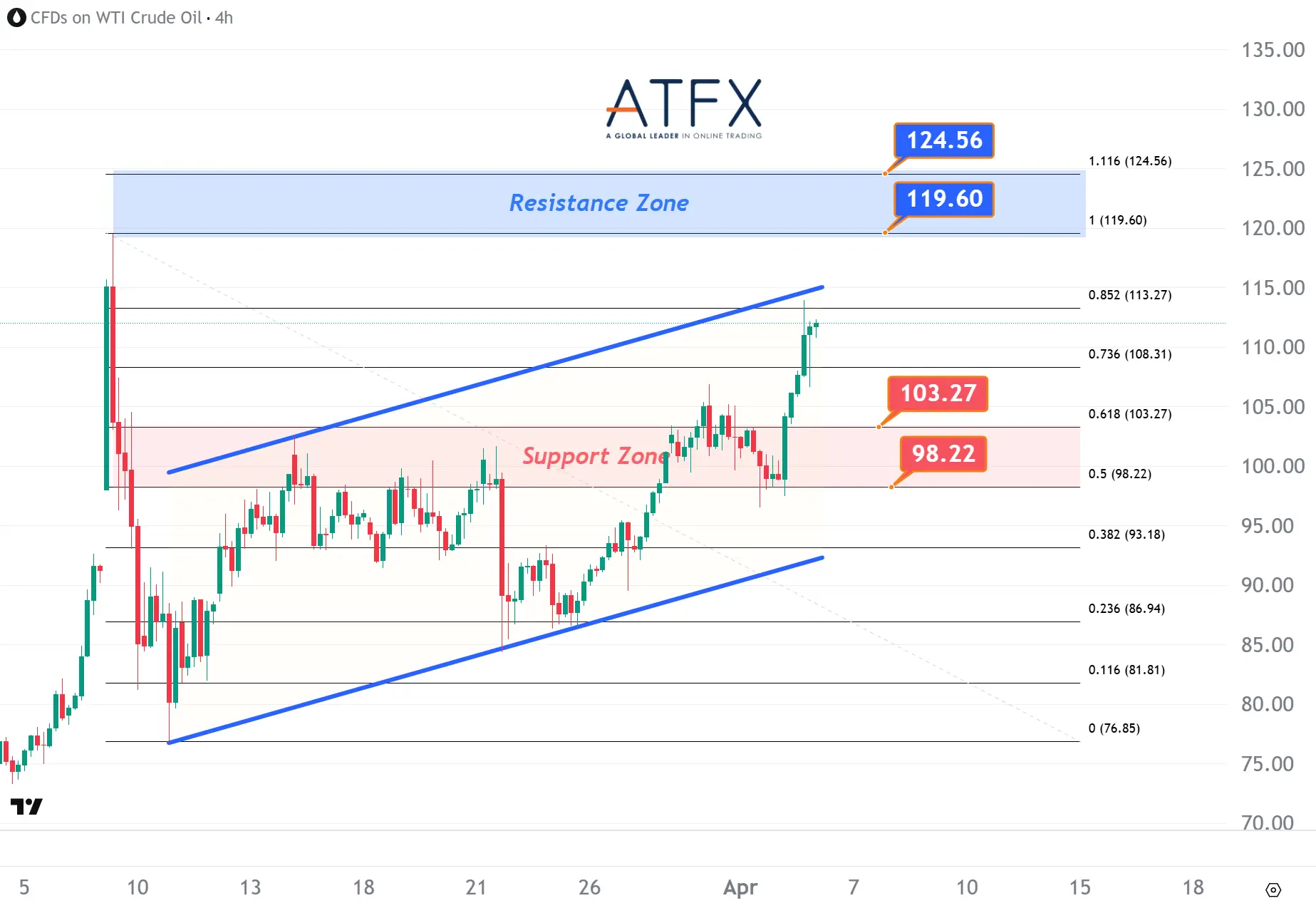 - Support: 103.27/98.22 WTI skyrocketed over 13% to $112.06, marking its largest absolute daily gain since 2020. The rally followed Trump’s vow to “obliterate” Iran’s infrastructure and the UAE’s push for a UN mandate to forcefully reopen the Strait of Hormuz, effectively pricing in a massive supply shock.