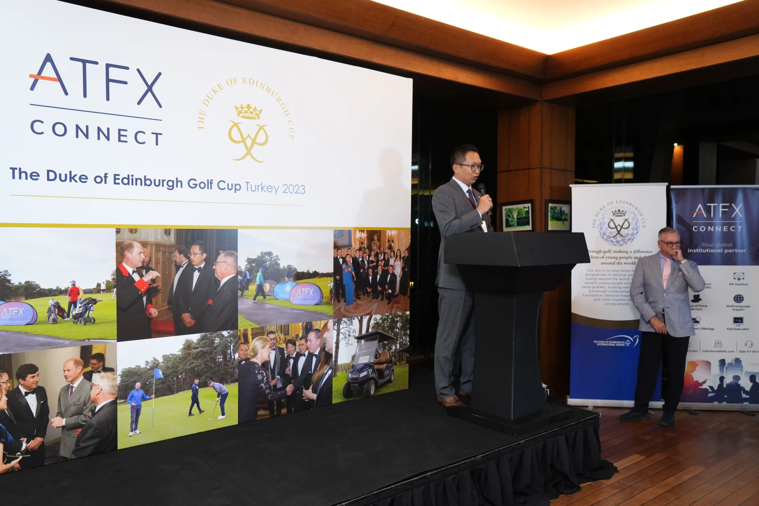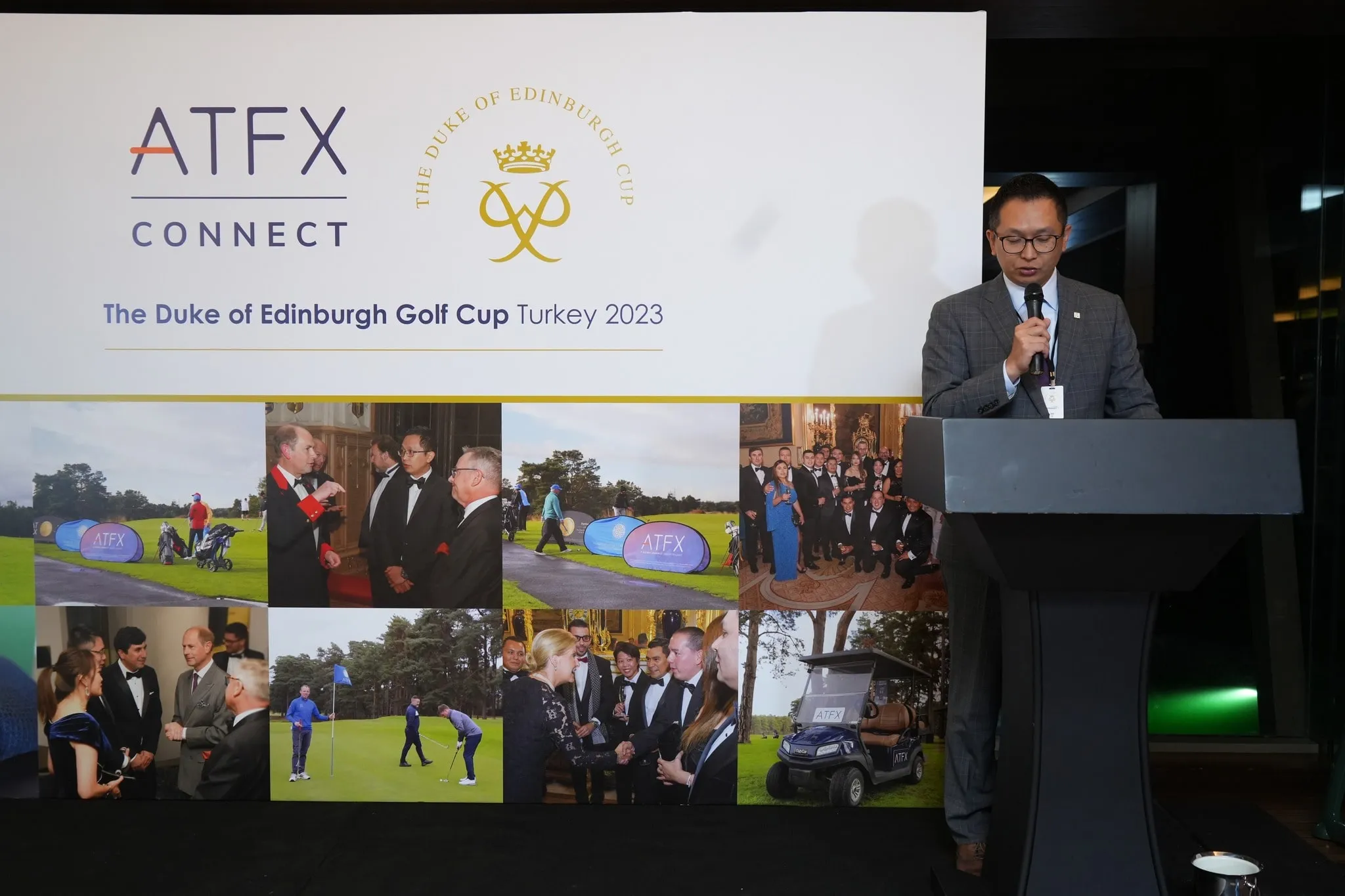 ATFX team was introducing the team members to Prince Edward, Earl of Wessex during the prize-giving dinner held in the ballroom of Wentworth Golf Club on 29 September 2021.
