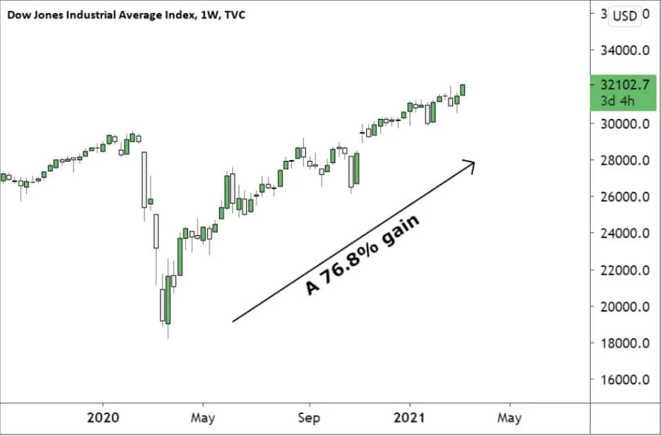 Dow Jones chart analysis refers to the in-depth examination of the index’s price movements over time. Dow Jones technical analysis aims to identify trade opportunities that offer a good balance between the potential losses and gains.