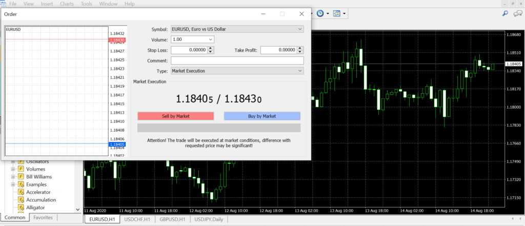 Depending on whether you choose ‘Market Execution’ or ‘Pending Order’ will determine your next options.