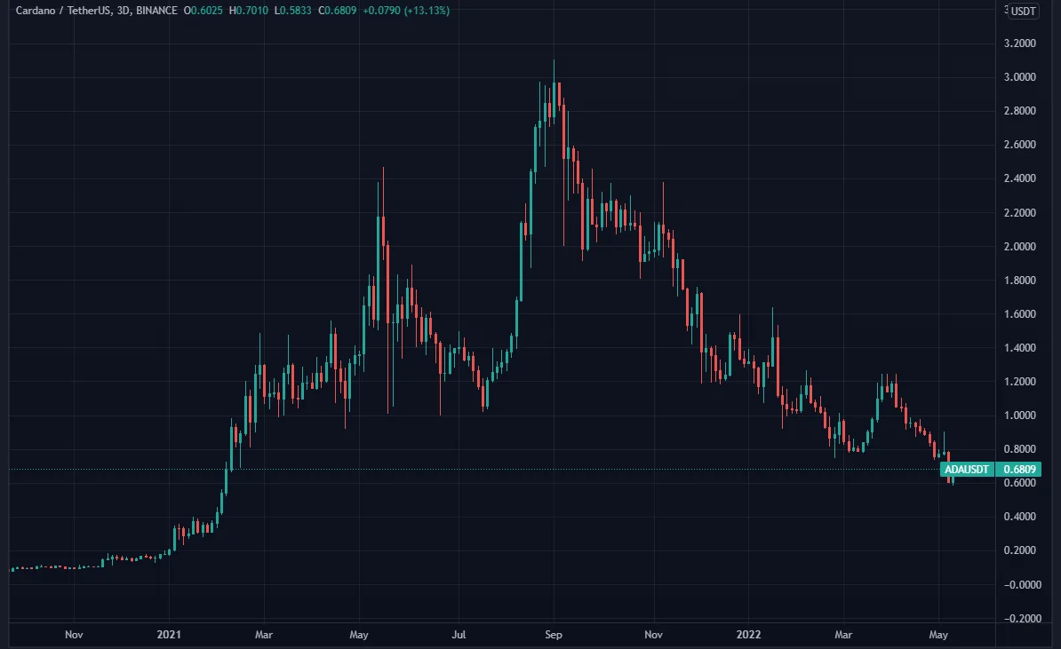 Vào mùa thu năm 2020, giá Bitcoin bắt đầu tăng vọt một lần nữa. BTC đã tăng vượt mốc 20.000 USD vào tháng 12/2020 và tiếp tục phục hồi để đánh dấu mức cao nhất mọi thời đại mới. Ngoài các nhà đầu tư nhỏ lẻ, nhiều tổ chức đã tham gia vào lĩnh vực tiền điện tử. Dòng người tham gia mới đã cung cấp cho thị trường nhiều vốn, và giá tiền điện tử tăng lên mức cao kỷ lục. Cardano cũng đạt mức cao nhất mọi thời đại mới là 2,465 USD vào tháng 5/2021, tạo ra lợi nhuận thay đổi cuộc sống là 12.900%. Tuy nhiên, ADA phải đối mặt với áp lực bán mạnh; do đó, giá của nó không giữ được mức mới. Một yếu tố chính đằng sau đợt bán tháo ADA là hoạt động mạng thấp và sự vắng mặt của các ứng dụng phi tập trung.