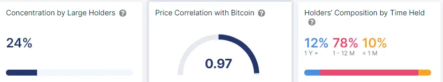 Theo thống kê từ Intotheblock, yếu tố tương quan giữa giá Cardano và Bitcoin là 0,97 dựa trên hành động giá trong 30 ngày qua.