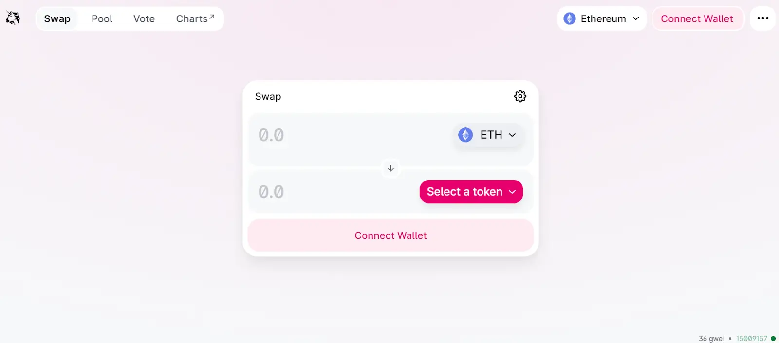 Mặc dù Uniswap là một giao thức của các hợp đồng thông minh khác nhau được triển khai trên chuỗi khối Ethereum, nhưng bạn không cần phải là một lập trình viên để giao dịch trên sàn giao dịch phi tập trung hàng đầu (DEX). Website của Uniswap hoạt động như phần đầu của giao thức và cho phép bất kỳ người dùng nào chưa có kinh nghiệm trước đó tương tác với DEX.
